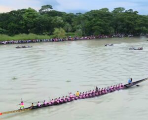 উজিরপুরে সন্ধ্যা নদীতে ঐতিহ্যবাহী নৌকা বাইচ প্রতিযোগিতা