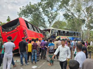 ঢাকা-বরিশাল মহাসড়কে দুই বাসের মুখোমুখি সংঘর্ষে নিহত ২