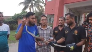 কলাপাড়ায় ৬ ফুট দৈর্ঘ্যের দাড়াশ সাপ অবমুক্ত